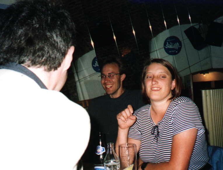 Die Party ist vorbei, trotzdem amüsieren sich Mmaddin und Mmeike gut mit ihrem Gegenüber